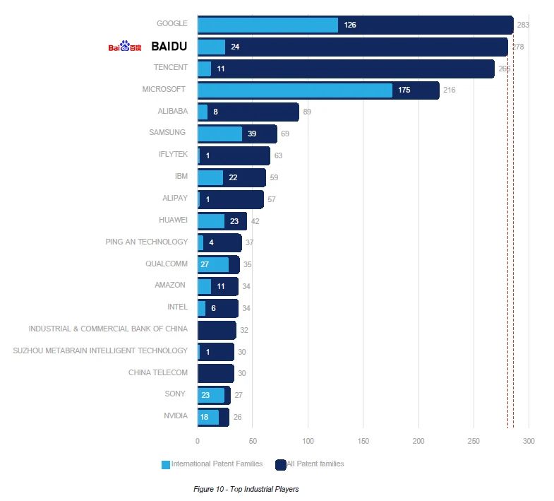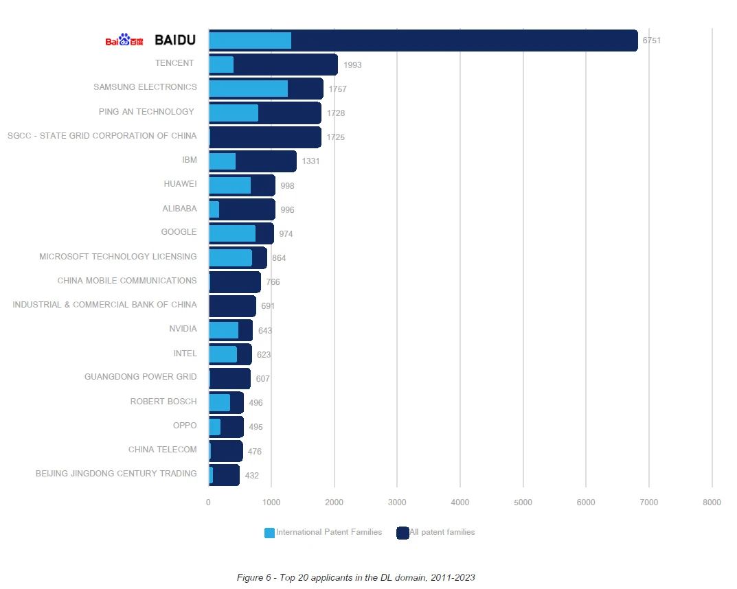 ● 深度学习领域,百度专利申请量达6751件,是第二名的3倍多,位列全球第一;